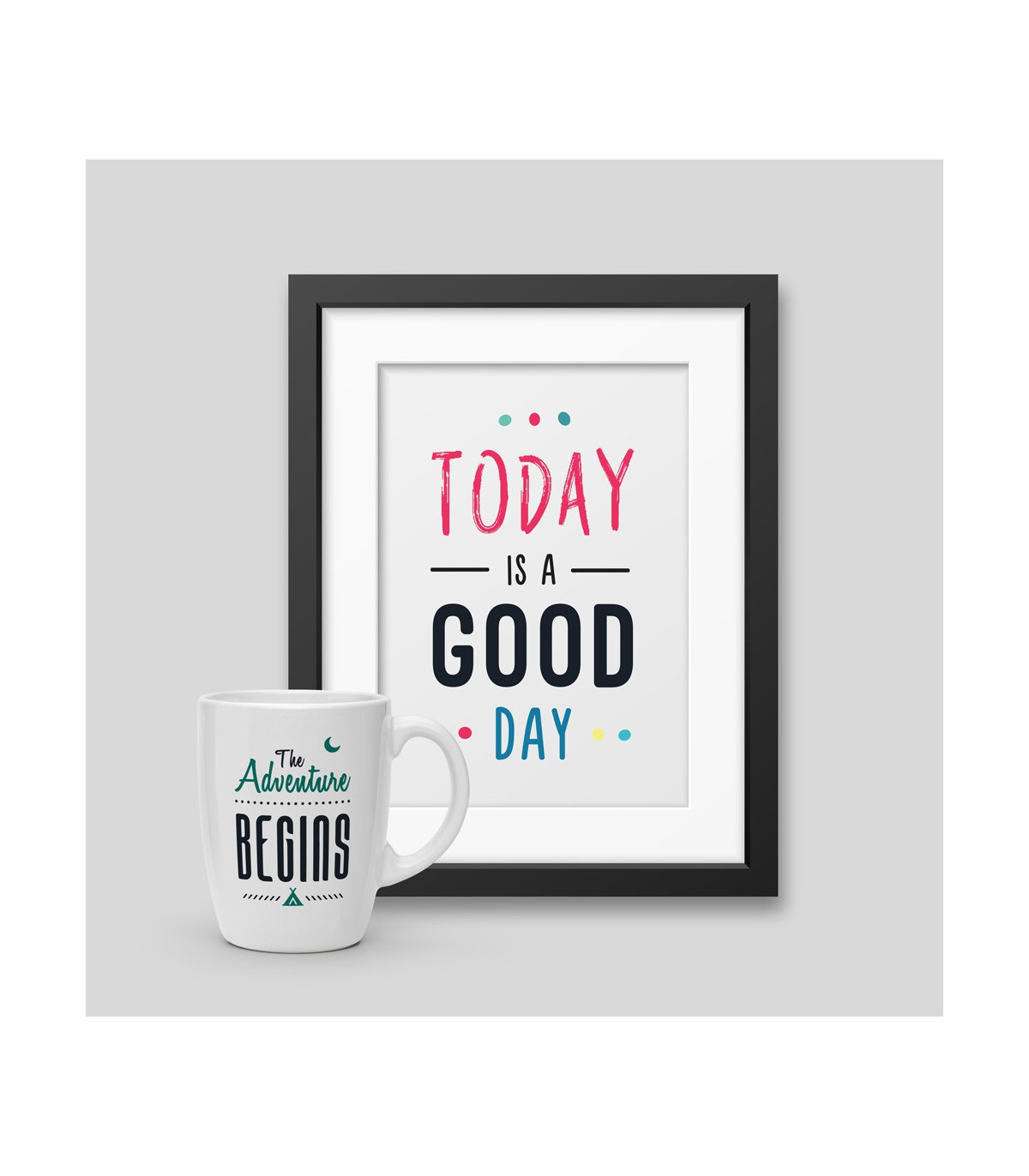 Mug The Adventure Begins + Framed poster Today is a good day 40x60cm